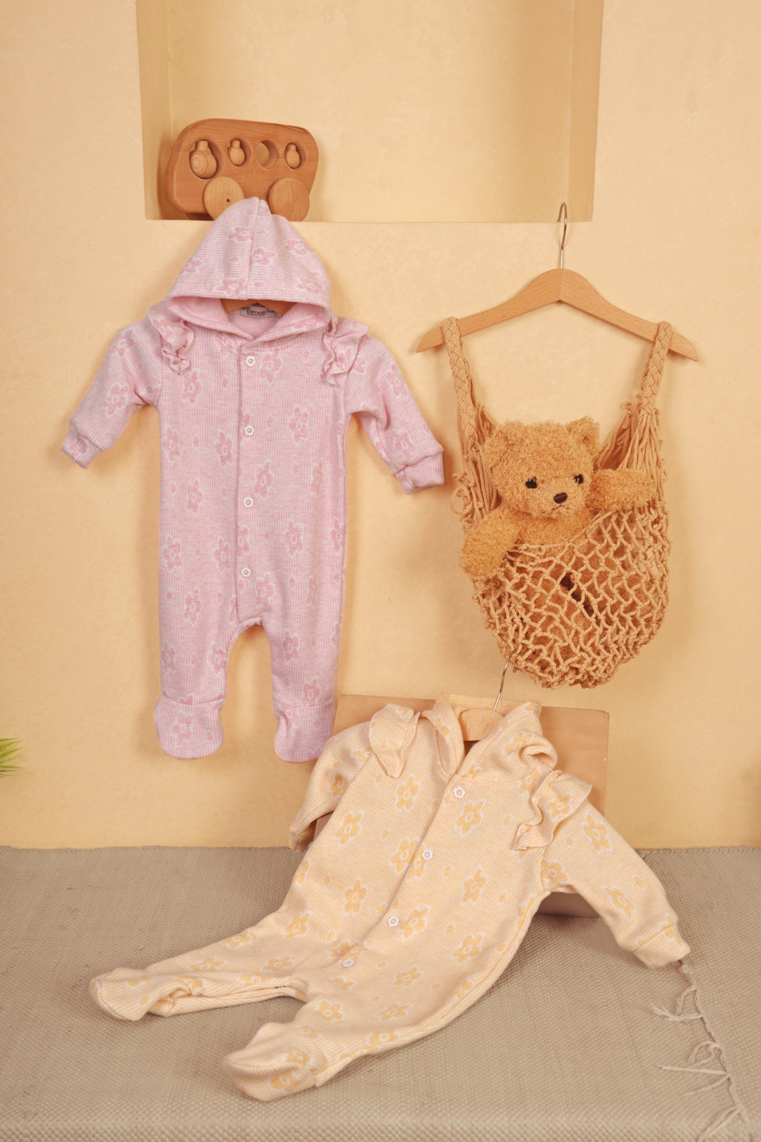 1 long sleeve romper +1 hooded blanket +1 hat + 1 mittens