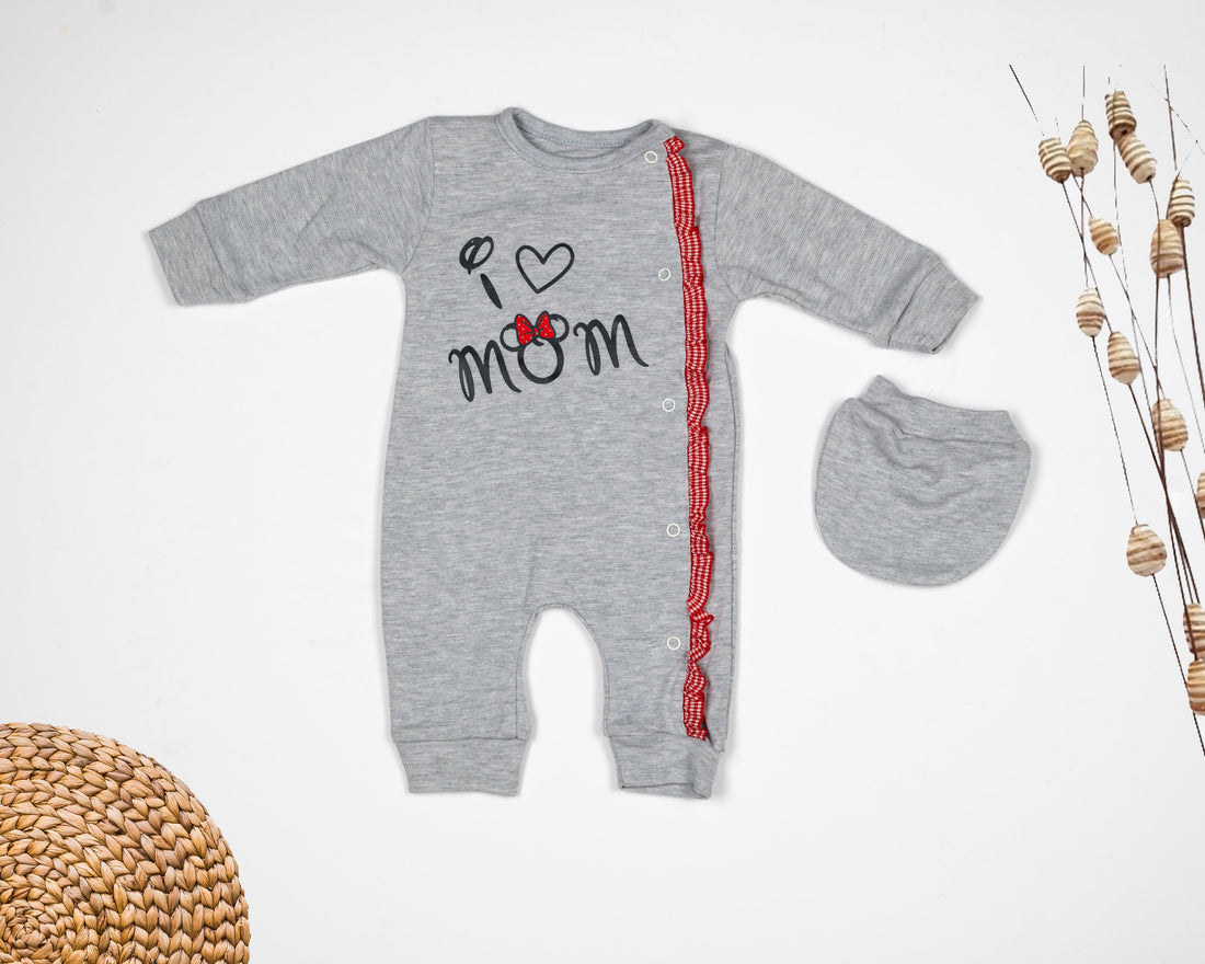 Long puffed sleeves romper printed 100% cotton fabric snaps from the front for an easy...