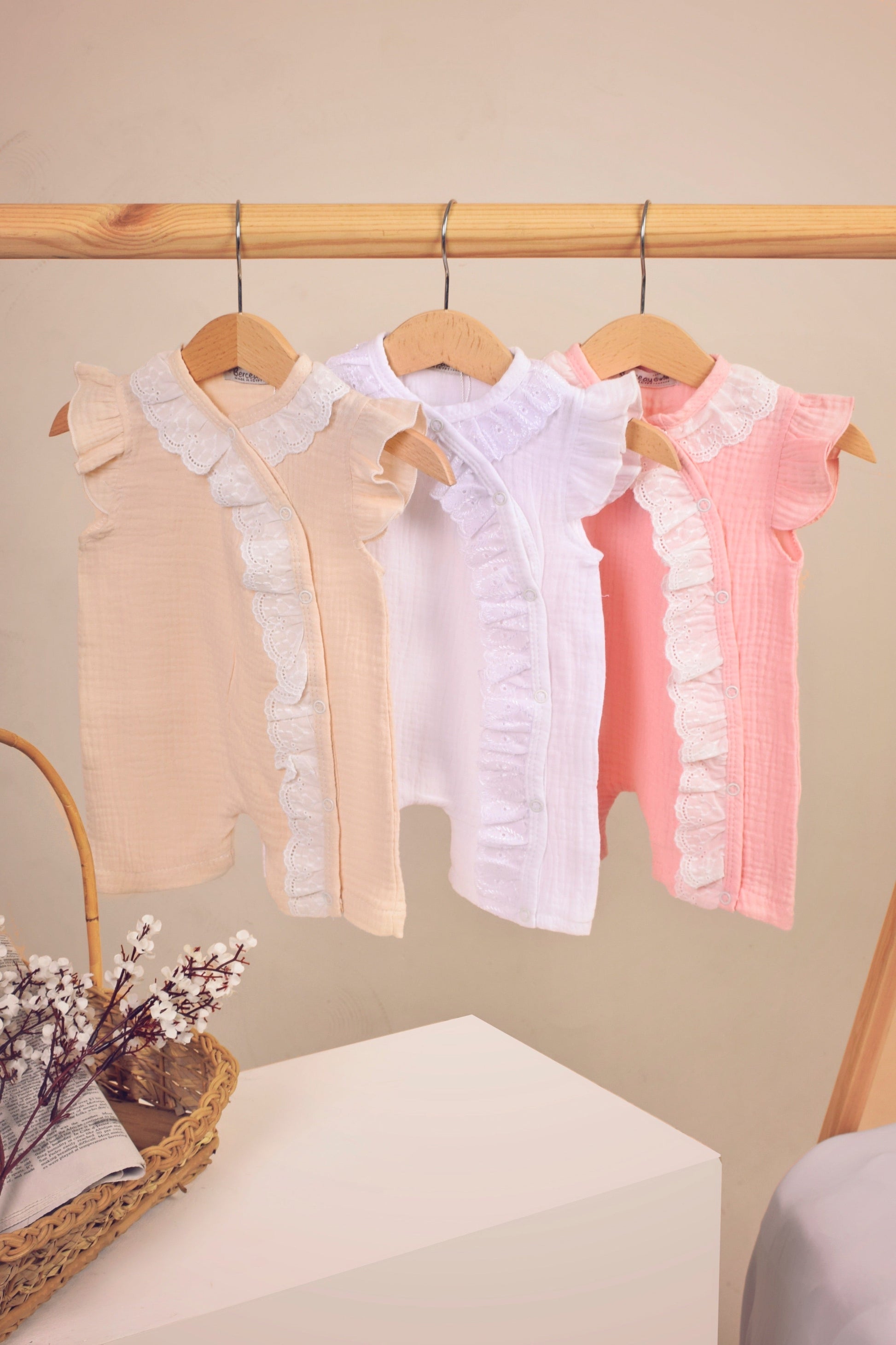 Detailed embroidered rompers with ruffles and Bow