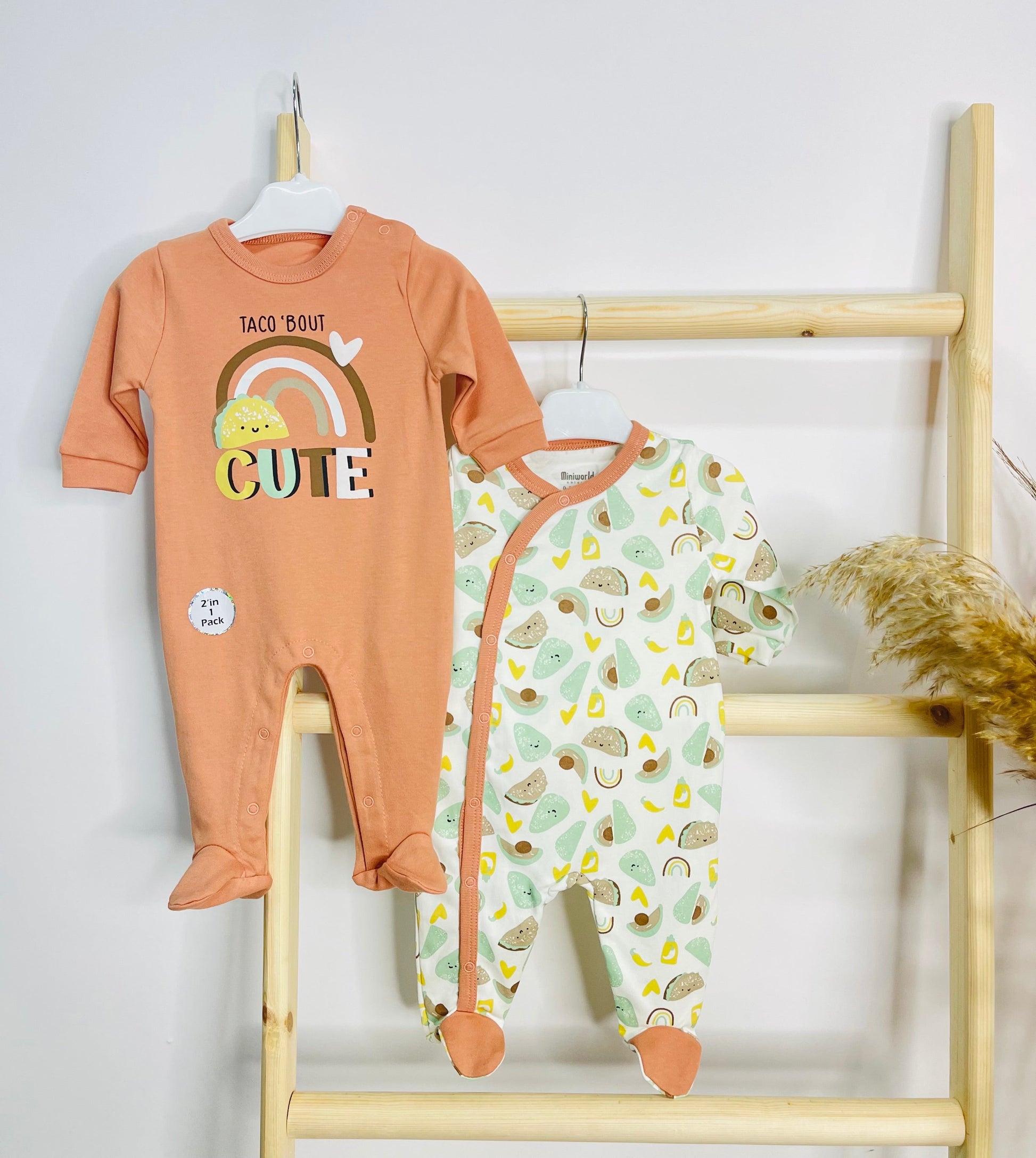 100% cotton pack of 2 printed long sleeves rompers